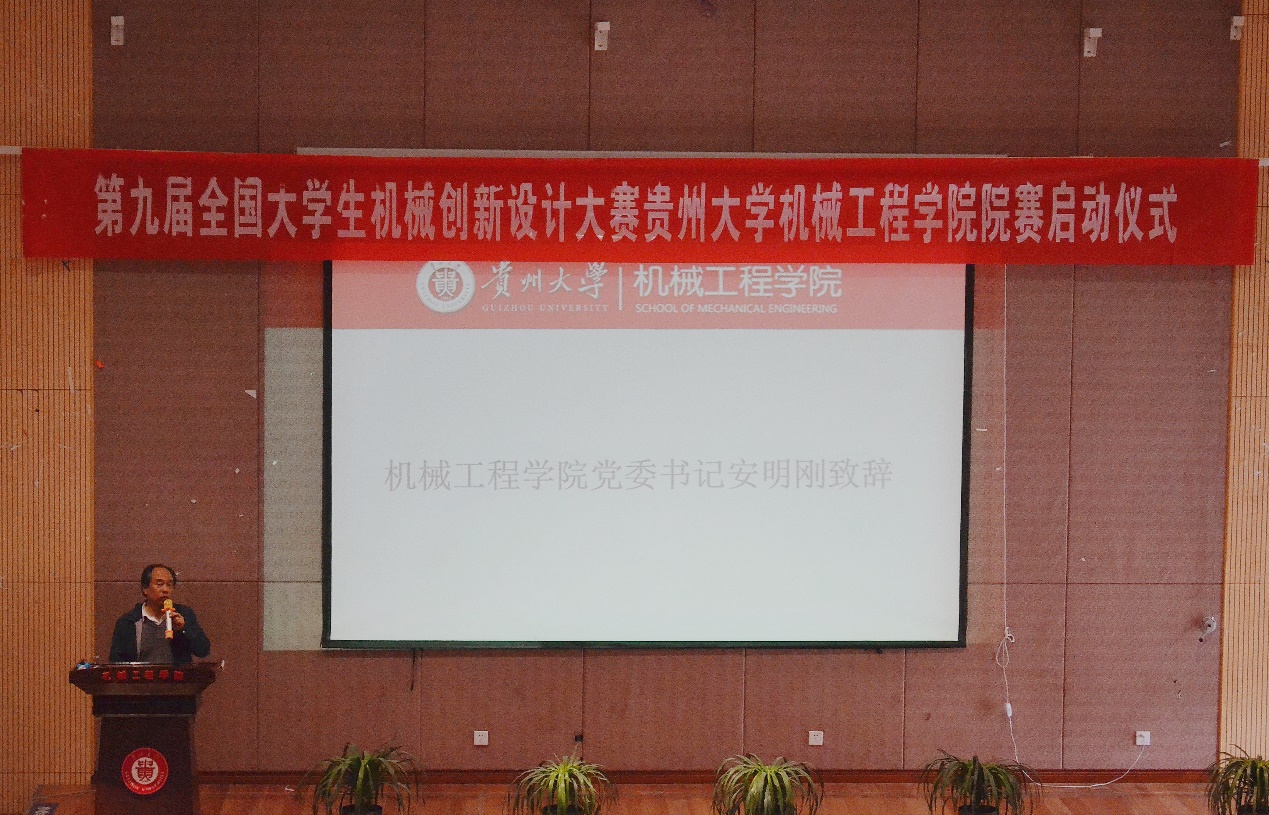 (報(bào)道  范順鑫|攝影  張松松 梁鵬飛)1111日中午,為順利推進(jìn)第九屆全國(guó)大學(xué)生機(jī)械創(chuàng)新設(shè)計(jì)大賽的進(jìn)行,機(jī)械工程學(xué)院舉辦的院賽啟動(dòng)儀式在機(jī)械樓圓形報(bào)告廳順利舉行。機(jī)械工程學(xué)院黨委書記安明剛、機(jī)械工程學(xué)院副院長(zhǎng)楊勤、何峰以及相關(guān)負(fù)責(zé)老師出席了會(huì)議。