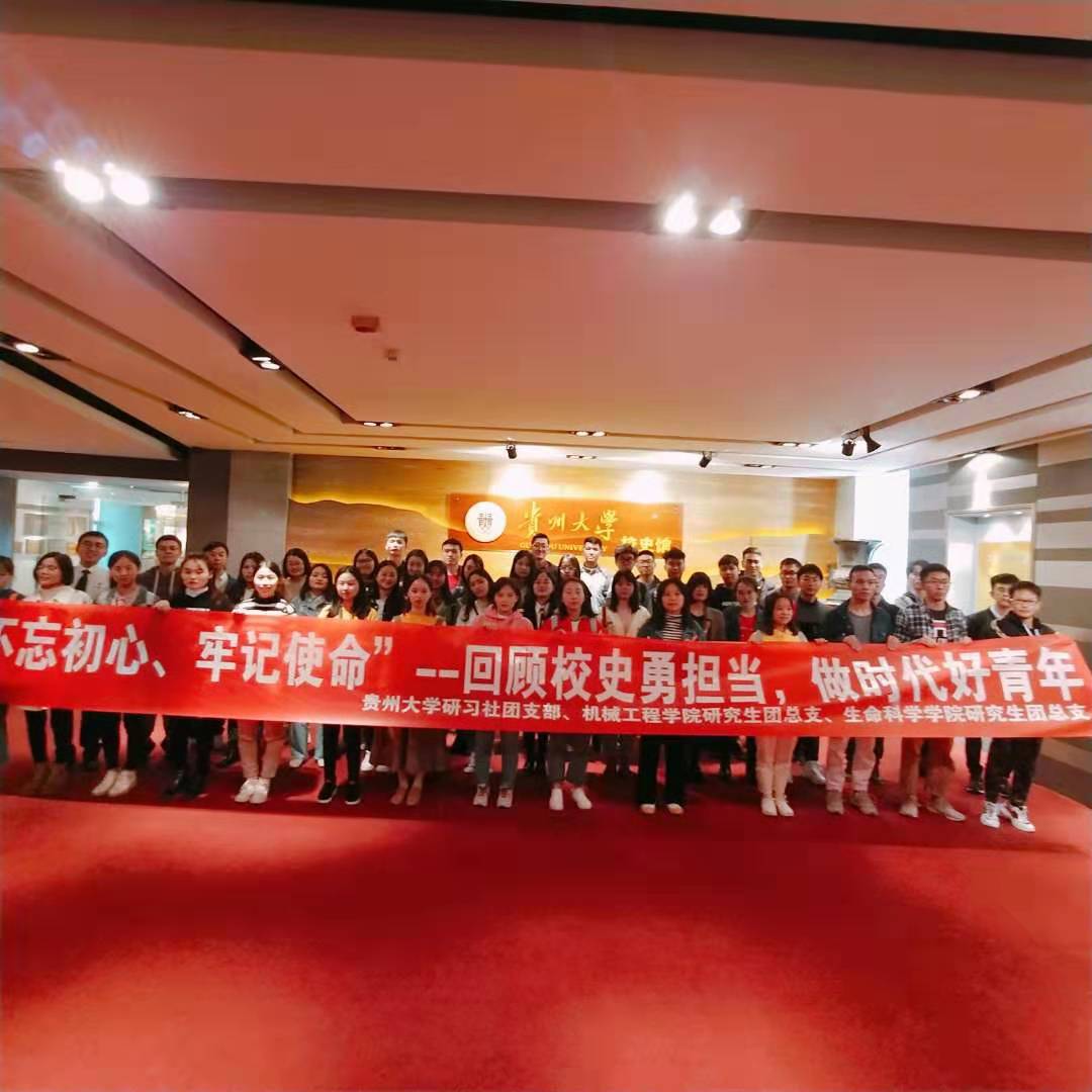 2019年11月4日下午,由貴州大學(xué)機(jī)械工程學(xué)院研究生團(tuán)總支、生命科學(xué)學(xué)院研究生團(tuán)總支以及研習(xí)社共同組織策劃的“不忘初心,牢記使命”系列團(tuán)日活動(dòng)成功舉行。以“回顧校史勇?lián)?dāng),做時(shí)代好青年”為主題,分為主題宣講和參觀校史館兩個(gè)部分,在機(jī)械學(xué)院和生命科學(xué)學(xué)院獲得了廣泛響應(yīng),參加人數(shù)共計(jì)80余人。