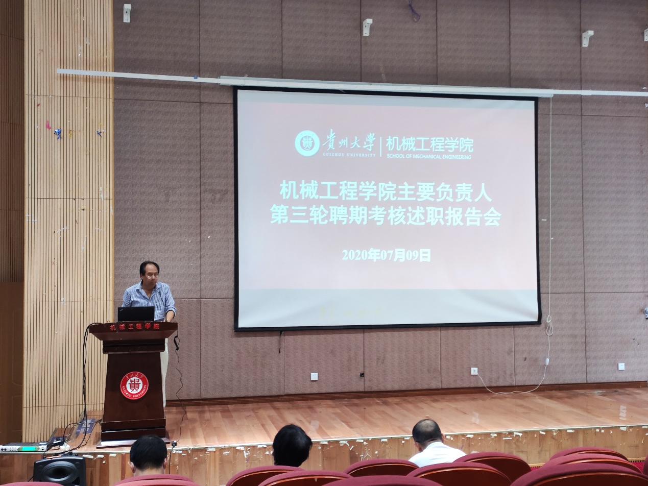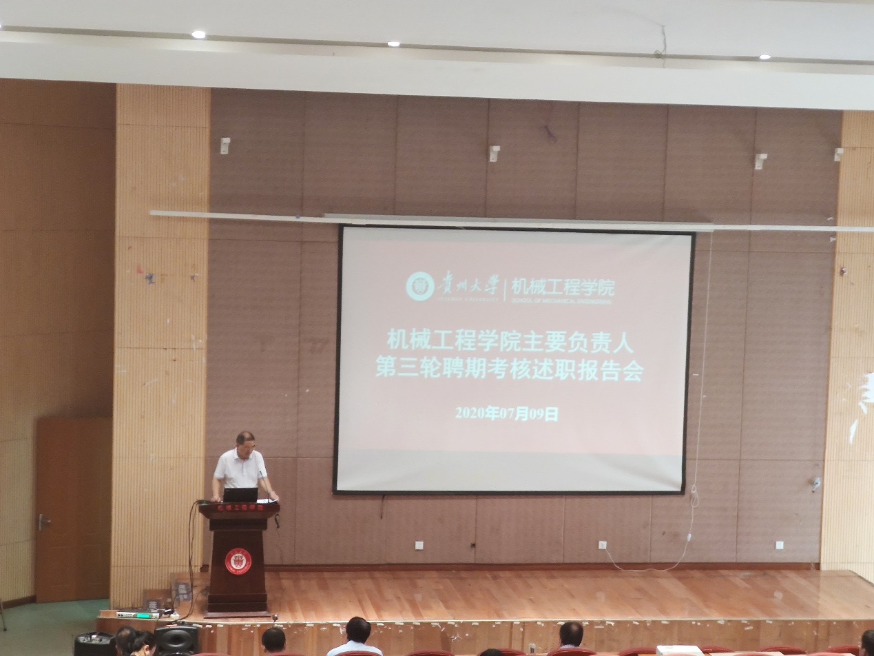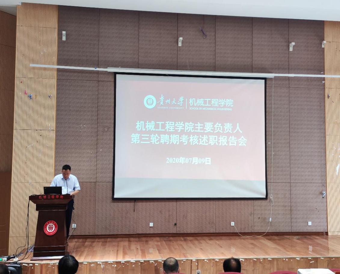 2020年7月9日上午,機械工程學院在圓形報告廳舉辦了學院主要負責人第三輪聘期述職報告會。教育部駐貴州大學黨建聯(lián)絡員、貴州民族大學原黨委副書記唐建榮同志蒞臨指導報告會。參加報告會的學院領導有安明剛書記、李少波院長,代祥社副書記、楊勤副院長、何鋒副院長、趙津副院長,以及機械工程學院全體教職工。報告會由代祥社副書記主持。