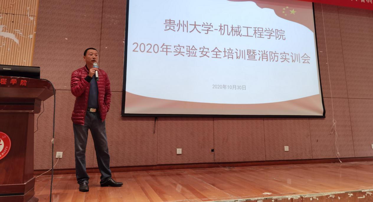 2020年10月30日9點30分,機械工程學院于圓形報告廳舉行了貴州大學機械工程學院2020年實驗室安全培訓暨消防實訓會。機械工程學院副院長趙津教授,實驗中心全體實驗教師、科研實驗室的教師及全體研究生出席了本次會議。