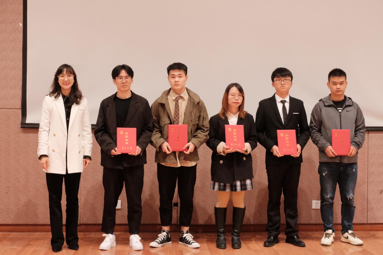 機(jī)械工程學(xué)院黨委副書記廖燁副書記為2020-2021年度優(yōu)秀研究生干部頒發(fā)了榮譽(yù)證書,肯定他們?yōu)閷W(xué)院作出的貢獻(xiàn),表彰他們的辛勤付出,并與他們合影留念。