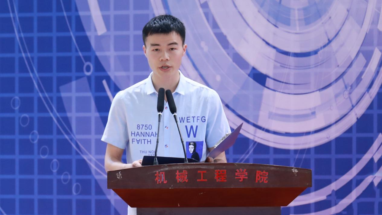 貴州大學(xué)機(jī)械工程學(xué)院機(jī)械設(shè)計制造及其自動化專業(yè)羅一波同學(xué)代表參賽隊伍發(fā)言。