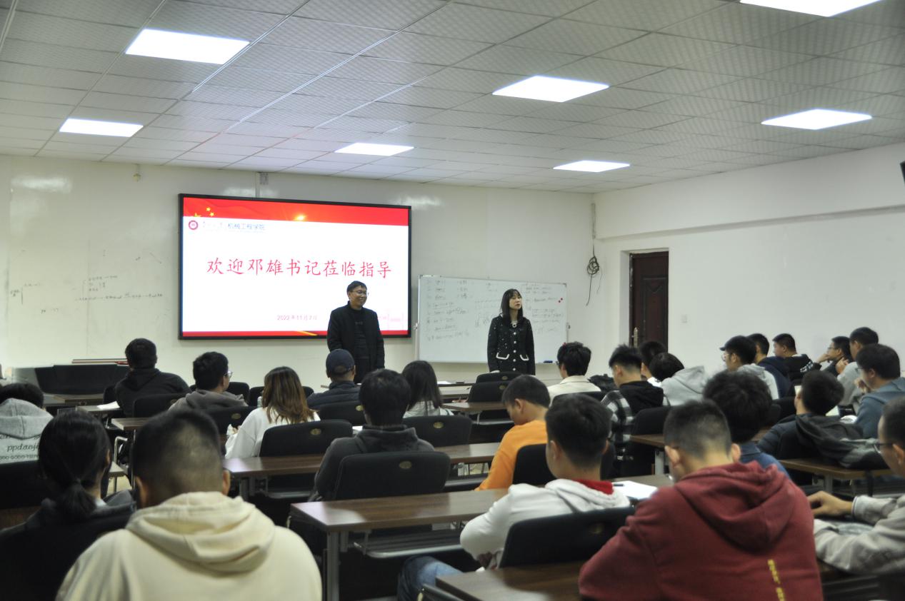 機(jī)械工程學(xué)院黨委副書記廖燁對鄧雄書記表示熱烈歡迎,并對他前來指導(dǎo)看望學(xué)生表示衷心感謝。