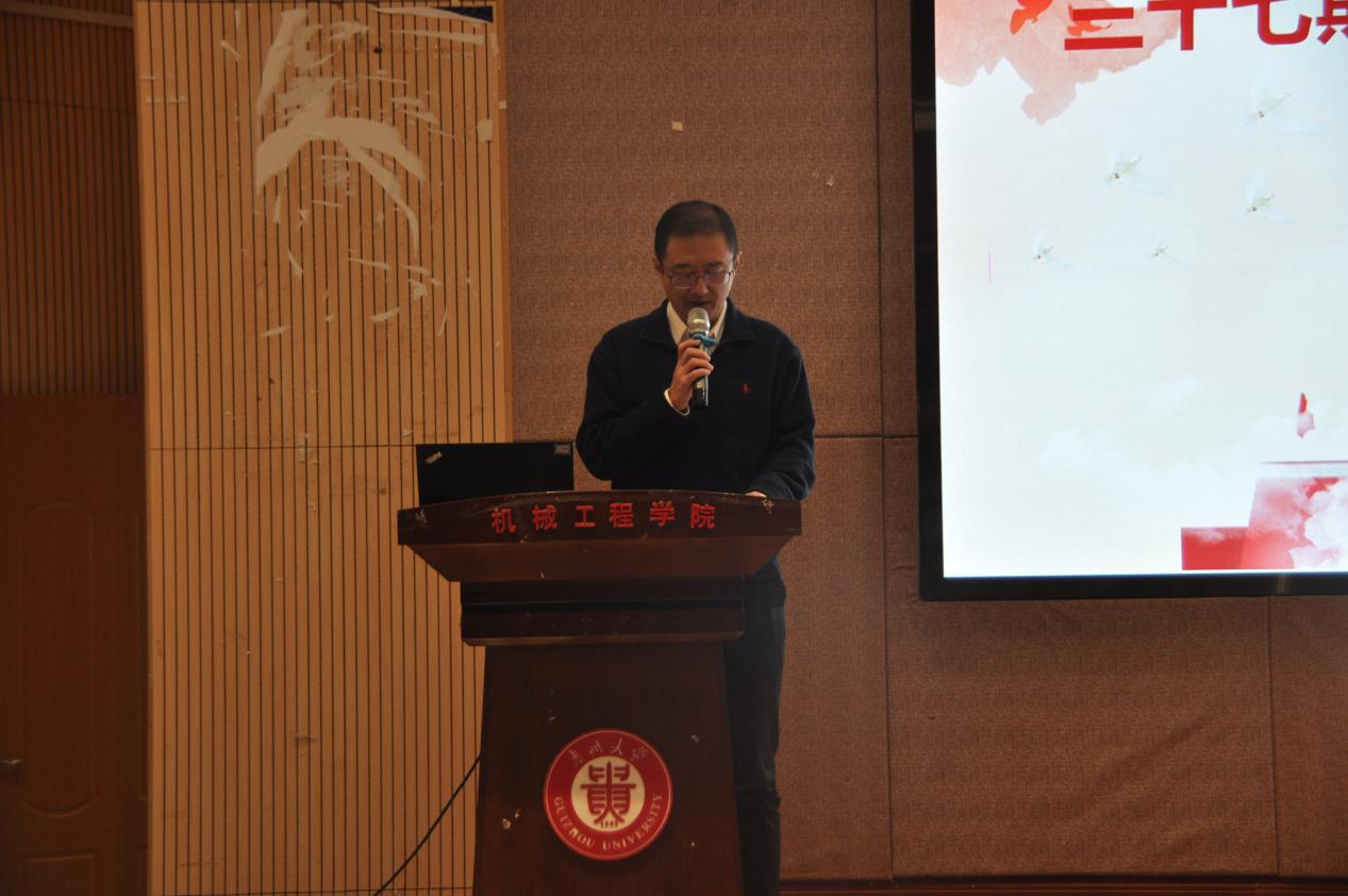 機械工程學院院長趙津宣讀《中共貴州大學委員會黨校學員管理辦法》,對全體學員提出要求,希望在黨校學習中能夠明確學習目的,端正學習態(tài)度、服從教學管理,自覺按照教學計劃完成各項學習任務。