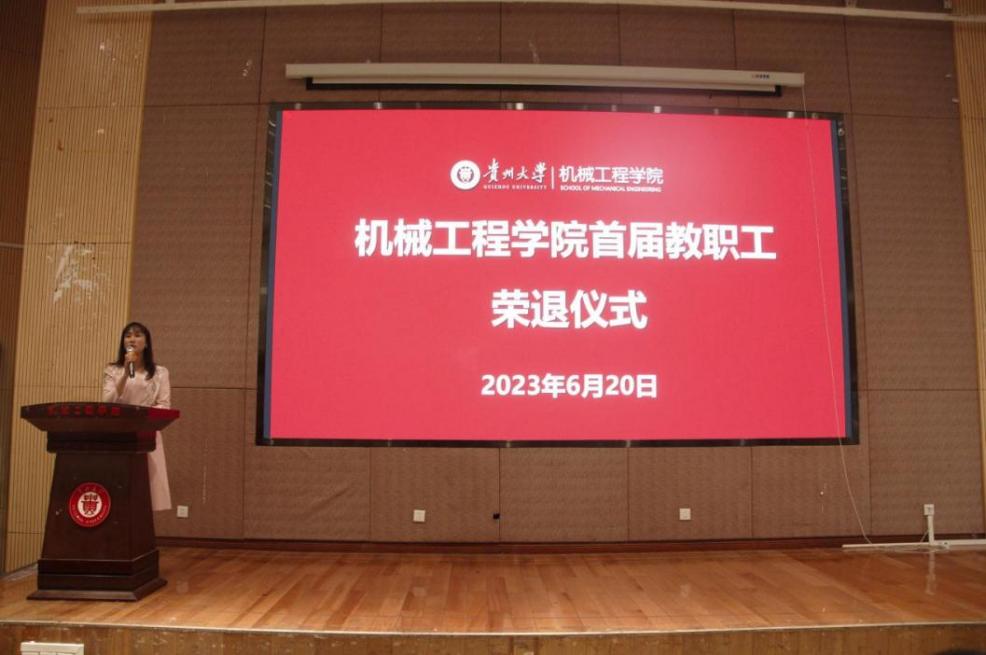 機械工程學院網(wǎng)站訊(記者 徐悅洋|攝影 劉菲)2023年6月20日下午,貴州大學機械工程學院在機械樓圓形報告廳舉行首屆教職工榮退儀式,機械工程學院黨委書記滕召華、院長趙津、正處級組織員董蔚然、副書記廖燁、副院長李家春出席會議,七位退休老師及學院全體教職工參加。儀式由廖燁主持。
