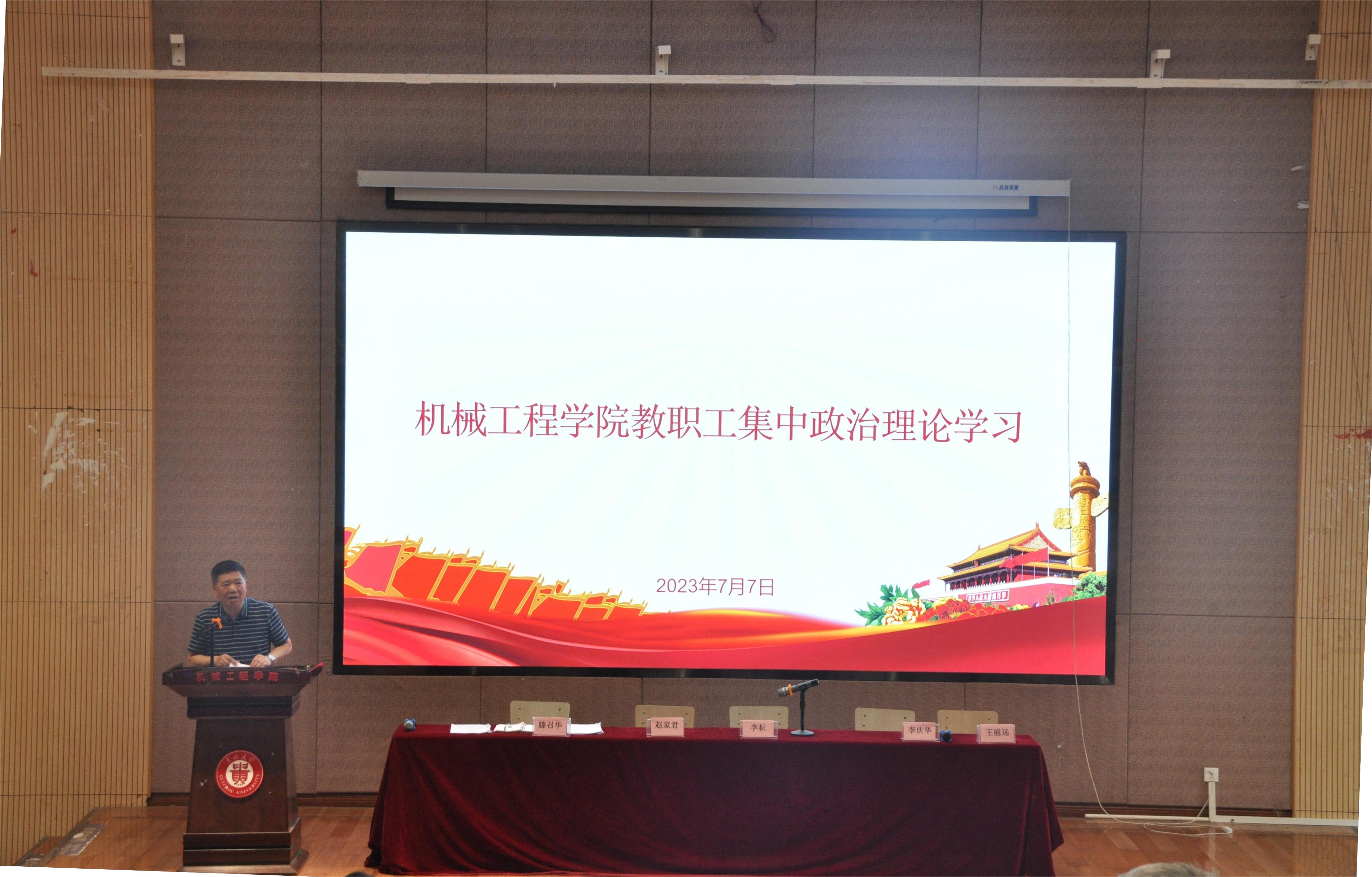 機械工程網(wǎng)站訊(記者 劉仕迪|攝影 陳偉)為深入學習宣傳貫徹黨的二十大精神,將習近平新時代中國特色社會主義思想學習成效轉化為推進學院高質量發(fā)展的強大動力。機械工程學院于2023年7月7日在西校區(qū)機械樓圓形報告廳召開了教職工集中政治理論學習會議。學院黨委書記滕召華、院長趙津、正處級組織員董蔚然、黨委副書記廖燁、副院長李家春出席會議,學院全體教職工參加。會議由學院黨委書記滕召華主持。