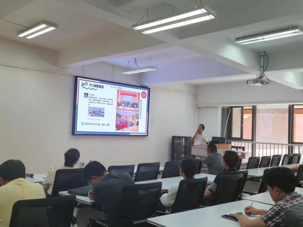 董蔚然從思想引導(dǎo)、學(xué)業(yè)指導(dǎo)、心理輔導(dǎo)、事務(wù)管理四個(gè)維度,介紹班主任工作職責(zé)以及指導(dǎo)如何做好班主任工作。學(xué)生科負(fù)責(zé)人王嘉斌為班主任們講解省級(jí)、校級(jí)優(yōu)秀班集體建設(shè)要求。隨后,校級(jí)“最美班主任”獲得者肖華強(qiáng)老師分享了個(gè)人工作及班級(jí)建設(shè)經(jīng)驗(yàn)。