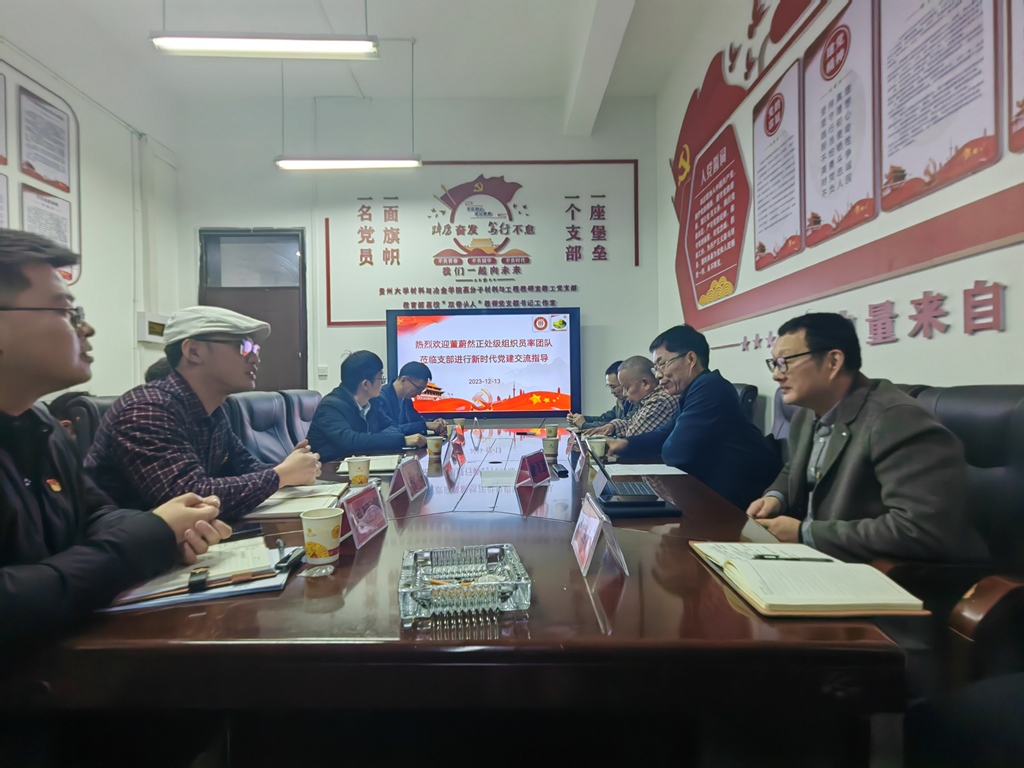 12月13日,貴州大學(xué)黨委正處級(jí)組織員董蔚然攜我支部支委成員與材料與冶金學(xué)院高分子材料與工程教研室教工黨支部開(kāi)展黨建交流。材料與冶金學(xué)院黨委書(shū)記劉劍、正處級(jí)組織員熊玉竹以及高分子材料與工程教研室教工黨支部全體黨員參加活動(dòng)?;顒?dòng)由全國(guó)高校“雙帶頭人”教師黨支部書(shū)記工作室負(fù)責(zé)人、高分子材料與工程教研室教工黨支部書(shū)記謝海波主持。