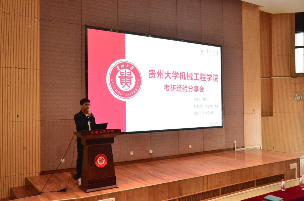 蘭天、陳凱文、李勇軍、周娟四位不同專業(yè)方向的學(xué)長學(xué)姐依次上臺(tái),從考研技巧、時(shí)間安排、專業(yè)課技巧等方面分享了自己的經(jīng)驗(yàn),陶政宇從學(xué)校選擇、申請(qǐng)條件、前期準(zhǔn)備等方面分享他自己申請(qǐng)出國留學(xué)的經(jīng)驗(yàn)。分享結(jié)束后,五位學(xué)長學(xué)姐在互動(dòng)環(huán)節(jié)為學(xué)弟學(xué)妹們答疑解惑。