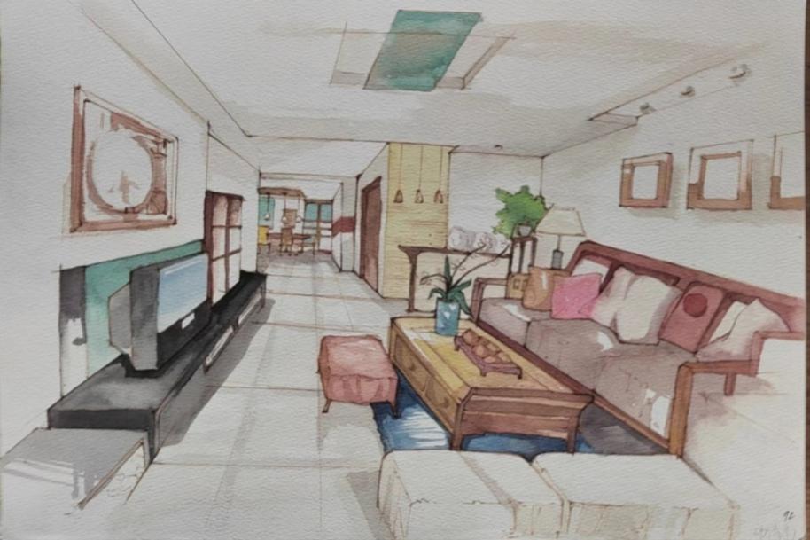 室內(nèi)設(shè)計體現(xiàn)了現(xiàn)代的風(fēng)格和設(shè)計理念,可以看到舒適的沙發(fā)、時尚的家具和裝飾品,以及柔和的燈光。整個畫面散發(fā)著溫馨和諧的氛圍,給人帶來愉悅和舒適的感覺。通過水彩的絢麗色彩和輕盈的筆觸,作品將觀眾帶入一個優(yōu)雅而舒適的室內(nèi)空間。