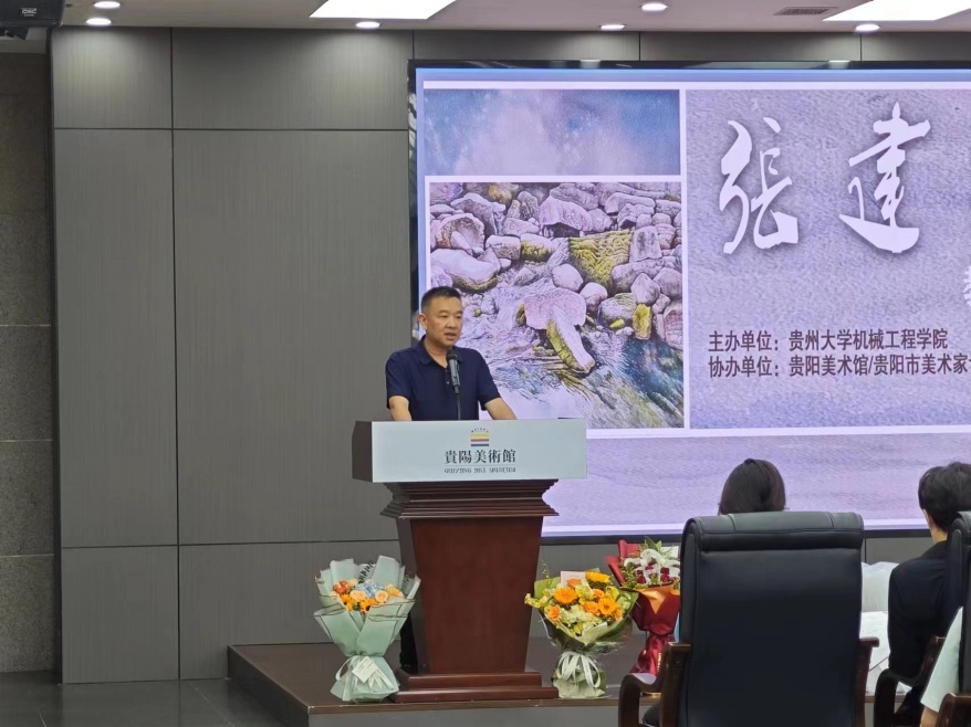 貴州大學(xué)機(jī)械工程學(xué)院院長趙津致辭中介紹了畫展情況、貴州大學(xué)機(jī)械工程學(xué)院和工業(yè)設(shè)計專業(yè)的情況以及張建敏老師的藝術(shù)成就。認(rèn)為此次畫展是對工程類專業(yè)學(xué)生開展美育的一個積極實踐。
