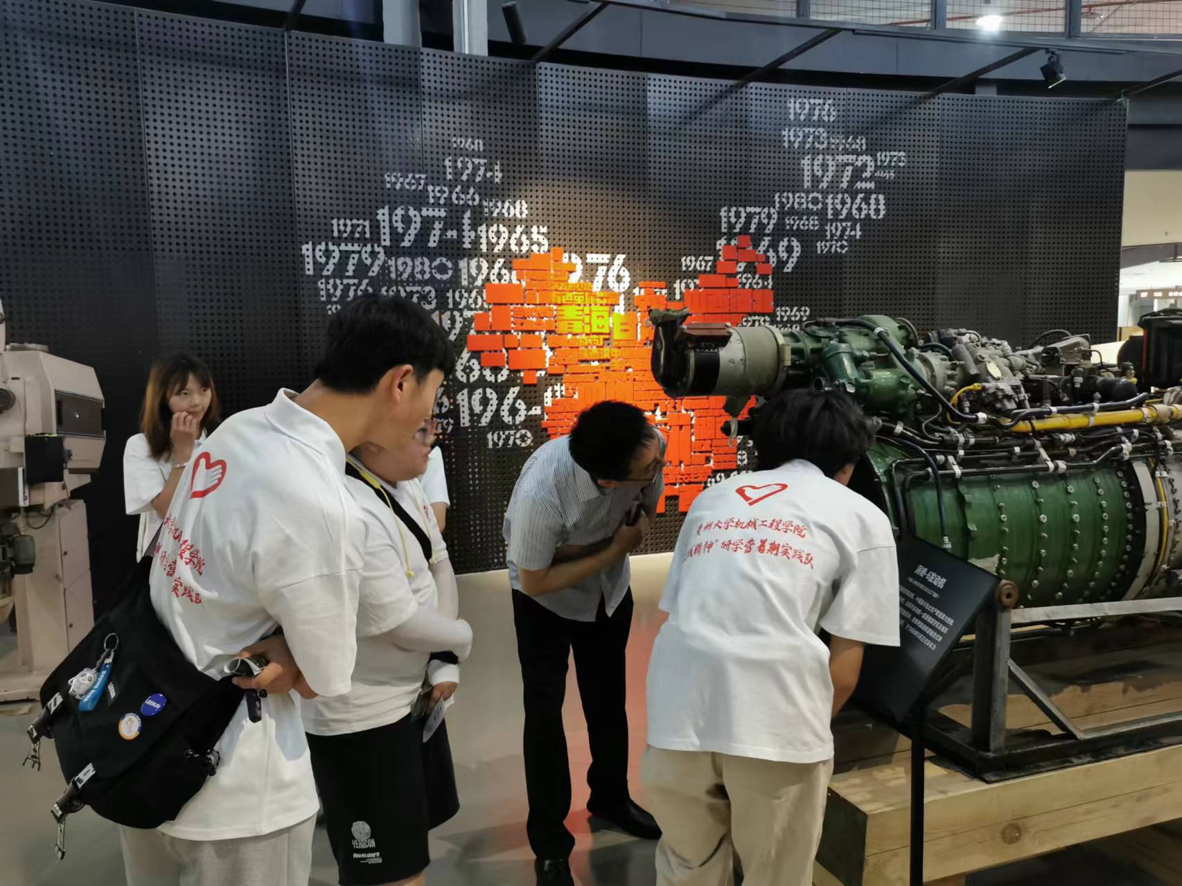 實(shí)踐隊(duì)員在博物館展陳的渦輪-6發(fā)動(dòng)機(jī)、電動(dòng)電控麻醉機(jī)、多功能機(jī)床等機(jī)械設(shè)備前駐足沉思,不時(shí)向指導(dǎo)老師提問、探討交流,在頭腦中搜尋與之相符的機(jī)械設(shè)計(jì)原理…參觀完露天展陳的機(jī)械設(shè)備,隊(duì)員們感慨我國(guó)裝備制造業(yè)的飛速發(fā)展,對(duì)三線建設(shè)之于貴州工業(yè)發(fā)展的重要意義有了更多的了解。