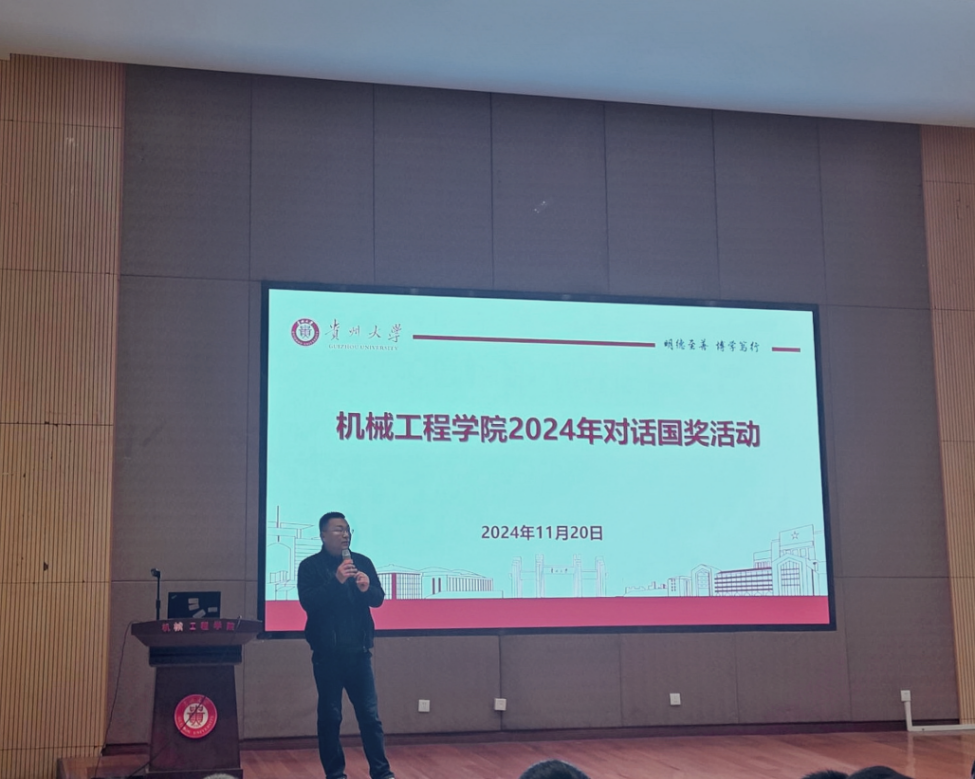 為深入學(xué)習(xí)貫徹黨的二十屆三中全會精神,加強(qiáng)研究生思想引領(lǐng)與學(xué)風(fēng)建設(shè)。貴州大學(xué)機(jī)械工程學(xué)院于2024年11月20日中午13點(diǎn)在學(xué)院圓形報(bào)告廳舉辦了2024年研究生“對話國獎(jiǎng)”主題分享會。分享會由研究生科田森老師主持,機(jī)械學(xué)院2023級、2024級全體研究生參與活動。