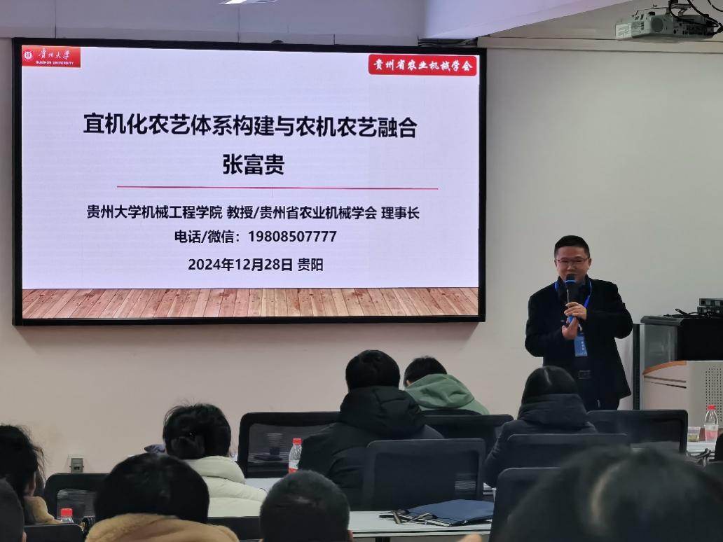20241228日上午,貴州省農(nóng)業(yè)機(jī)械學(xué)會(huì)2024年學(xué)術(shù)年會(huì)在貴州大學(xué)機(jī)械工程學(xué)院成功舉行,會(huì)議以“機(jī)械化助力丘陵山區(qū)主要糧油作物大面積單產(chǎn)提升”為主題,匯聚了眾多農(nóng)業(yè)機(jī)械領(lǐng)域的專(zhuān)家學(xué)者、企業(yè)代表以及研究生代表。