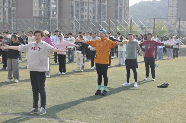 董蔚然宣布體質(zhì)提升工作小組成員名單,強(qiáng)調(diào)體育鍛煉的重要性。體育學(xué)院唐瑞珠老師代表體質(zhì)提升組發(fā)言,鼓勵(lì)大家按照體質(zhì)提升指導(dǎo)方案按時(shí)參加體育鍛煉。隨后,在學(xué)生代表李亨丞的帶領(lǐng)下,同學(xué)們進(jìn)行集體宣誓。跑步開始前,唐瑞珠老師帶領(lǐng)師生們一起做熱身運(yùn)動(dòng),在跑步環(huán)節(jié),男女分組依次起跑,教師也參與其中,學(xué)院師生在操場(chǎng)上揮灑汗水,營造了良好的運(yùn)動(dòng)氛圍。
