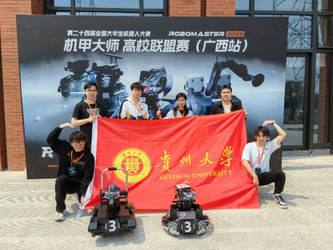 貴州大學機甲大師戰(zhàn)隊是一只年輕充滿活力的隊伍,由機械工程學院干雪梅老師作為指導教師,戰(zhàn)隊成員來自于機械工程學院,大數(shù)據(jù)與信息工程學院,北阿拉巴馬大學國際工程技術學院和電氣工程學院的交叉學科團隊。此次獲獎不僅是對機甲大師戰(zhàn)隊努力的肯定,也是學校在RoboMaster賽事中取得的重大突破。相信在學校教務處和機械工程學院領導的關心指導下,機甲戰(zhàn)隊將以此次佳績?yōu)樾缕瘘c,持續(xù)跨學科融合,優(yōu)化團隊協(xié)作,積極備戰(zhàn)后續(xù)賽事,努力在3V3對抗賽和超級對抗賽展現(xiàn)貴大學子的創(chuàng)新風采與拼搏精神,為學校爭得更多榮譽。