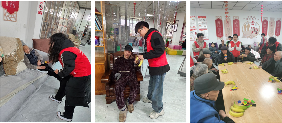 “分發(fā)水果” 時(shí),志愿者們分工明確,有的認(rèn)真清洗水果,有的仔細(xì)地將水果切成小塊,方便老人食用。隨后,他們穿梭在老人中間,將洗好切好的蘋(píng)果、香蕉、梨等水果一一送到老人手中,并貼心地詢(xún)問(wèn)老人是否還需要其他幫助。老人們吃著香甜的水果,臉上洋溢著幸福的笑容,不停地對(duì)志愿者們表示感謝。
