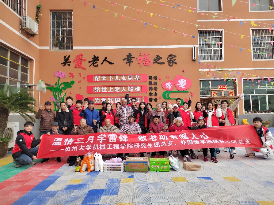 2025 3 30 日下午,貴州大學(xué)機(jī)械工程學(xué)院研究生團(tuán)總支、外國(guó)語(yǔ)學(xué)院研究生團(tuán)總支與花溪區(qū)幸福頤養(yǎng)中心攜手,共同開(kāi)展了一場(chǎng)以弘揚(yáng)新時(shí)代雷鋒精神為主題的志愿服務(wù)活動(dòng)。此次活動(dòng)旨在引導(dǎo)廣大青年學(xué)生積極踐行雷鋒精神,以及 “奉獻(xiàn)、友愛(ài)、互助、進(jìn)步” 的志愿精神,通過(guò)實(shí)際行動(dòng)紀(jì)念雷鋒,深入弘揚(yáng)雷鋒精神,大力宣傳其在新時(shí)代的重要意義,并樹(shù)立學(xué)雷鋒先進(jìn)典型,讓雷鋒精神在新時(shí)代持續(xù)傳承、璀璨奪目。