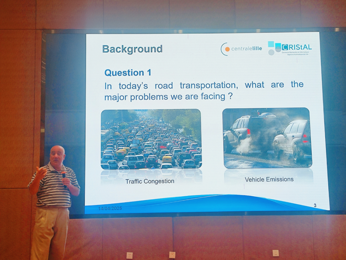 A. EL KAMEL教授首先介紹了智能交通系統(tǒng)(ITS)的背景和關(guān)鍵方面。他指出,當(dāng)前道路交通面臨諸多挑戰(zhàn),如交通擁堵和車輛排放問題。這些問題不僅影響交通效率,還對環(huán)境和人類健康造成負(fù)面影響。他強(qiáng)調(diào),通過智能交通系統(tǒng)的控制與優(yōu)化,可以有效緩解這些問題。