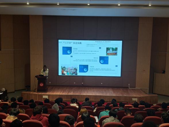 2021級本科生王亞蘭、宋潤苗從參加社會實踐活動意義、自身參與的社會實踐具體案例、社會實踐活動推薦進(jìn)行分享,詮釋“知行合一”的意義,號召同學(xué)們在社會大課堂中錘煉擔(dān)當(dāng)。