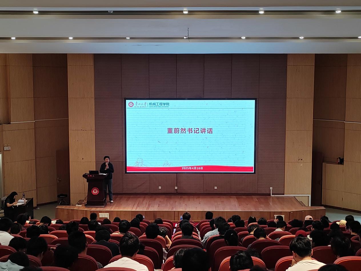 為引導(dǎo)學(xué)生明確學(xué)業(yè)目標(biāo)、強化實踐能力、提高綜合素質(zhì),機械工程學(xué)院于2025年4月16日、4月24日召開“機械啟航·春耕行動”主題2024級學(xué)生大會。貴州大學(xué)正處級組織員董蔚然、機械工程學(xué)院副院長唐正強出席,學(xué)生科副科長王嘉斌、輔導(dǎo)員楊朵以及2024級全體同學(xué)參加。大會邀請3名赴哈佛訪學(xué)學(xué)生作訪學(xué)分享,邀請6名保研學(xué)生作社會實踐、學(xué)科競賽、專業(yè)學(xué)習(xí)方面的經(jīng)驗分享,發(fā)揮優(yōu)秀學(xué)生榜樣示范作用。