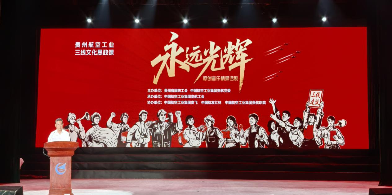思政課從深山鑄劍、山河歲月、山鷹展翅三個(gè)篇章,航空?qǐng)?bào)國(guó)為主線,通過(guò)影像資料、情景演繹、歌舞表演等多元形式,生動(dòng)還原了貴州航空人在三線建設(shè)時(shí)期靠山、分散、隱蔽生產(chǎn)條件下,從無(wú)到有建設(shè)航空制造基地,在艱苦環(huán)境中攻克技術(shù)難關(guān),用青春與熱血鑄就國(guó)之重器的動(dòng)人故事。