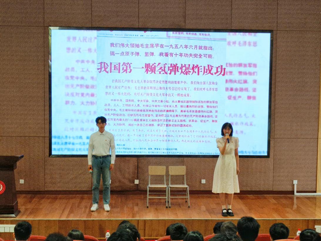 “三線精神”研學(xué)實(shí)踐隊(duì),以跨越時(shí)空的尋訪,將新時(shí)代大學(xué)生感悟艱苦奮斗、無私奉獻(xiàn)、團(tuán)結(jié)協(xié)作、勇于創(chuàng)新的三線精神用三重對(duì)話烙印在每個(gè)人的心中。《大漠青山寄深情》朗誦,以我國(guó)“兩彈元?jiǎng)住编嚰谙取案审@天動(dòng)地事,做隱姓埋名人”的感人事跡,以及三線建設(shè)者們?cè)F州默默無聞奉獻(xiàn)于我國(guó)航空事業(yè)的故事,呈現(xiàn)了老一輩建設(shè)者胸懷“國(guó)之大者”的生動(dòng)場(chǎng)景,詮釋了馬蘭基地建設(shè)者和三線基地建設(shè)艱苦奮斗,頑強(qiáng)拼搏,無私奉獻(xiàn)的精神。