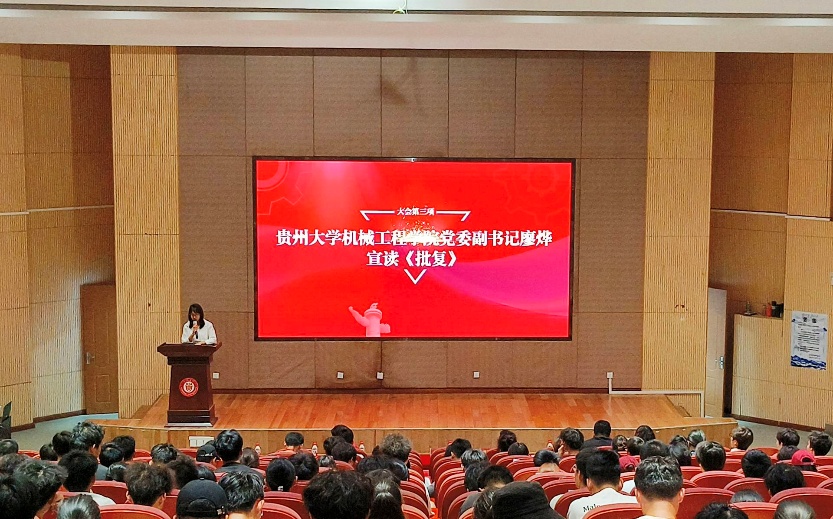 黨委副書記廖燁宣讀《關于同意召開貴州大學機械工程學院第十五次學生代表大會暨第二十一次研究生代表大會的批復》。