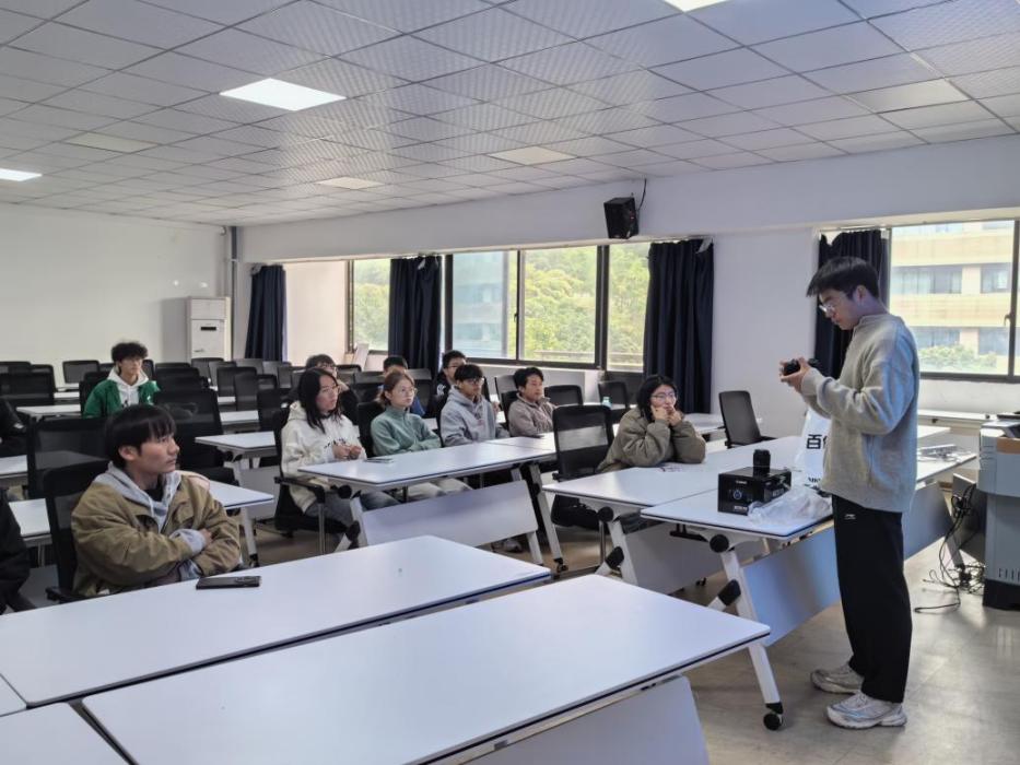 為加深理解,培訓設置了豐富的實拍演示環(huán)節(jié)。鐘奎同學以常見的校園場景為例,重點講解了構圖法則如三分法、引導線、對稱構圖等的實際應用,他提醒學員:“要學會在不同的場景使用不同的攝影技巧,找到不同的攝影角度。”在現場互動環(huán)節(jié),同學們積極提問,鐘奎同學一一解答,現場學習氛圍濃厚。