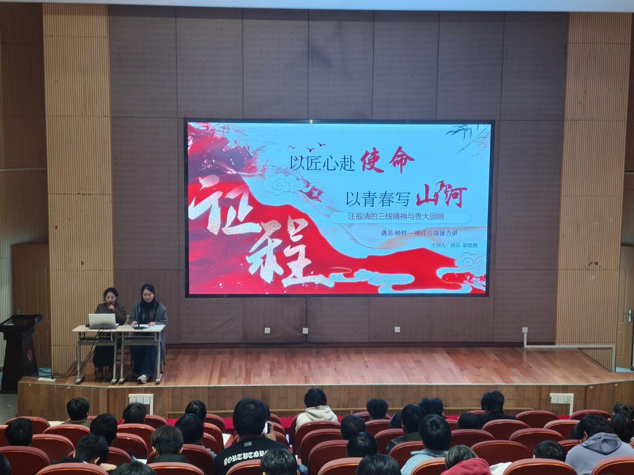 會(huì)議第一階段,楊朵老師機(jī)械學(xué)子郭雅茜以接力宣講的形式,講述汪福清先生的感人事跡與奮斗精神。宣講中,師生二人回顧我院首任系主任汪福清教授在貴州大方羊場(chǎng)壩溶洞中組織研制中國(guó)第一臺(tái)航空發(fā)動(dòng)機(jī)的艱辛歷程,號(hào)召學(xué)子以榜樣為鏡,接過接力棒,在機(jī)械工程領(lǐng)域書寫新時(shí)代篇章,堅(jiān)定學(xué)子們傳承匠心、勇?lián)姑男拍睢?/span>