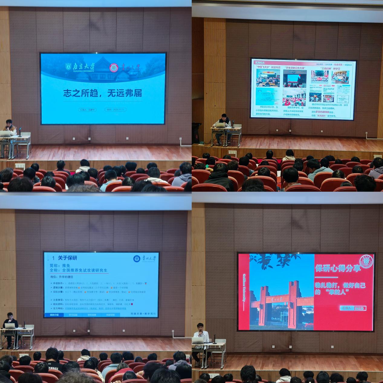 會(huì)議第二階段,四名保研學(xué)長(zhǎng)結(jié)合自身經(jīng)歷,從不同維度為學(xué)弟學(xué)妹們傳經(jīng)送寶。分享內(nèi)容涵蓋科研競(jìng)賽、學(xué)業(yè)規(guī)劃、志愿服務(wù)、面試技巧及升學(xué)選擇等方面?;?dòng)交流環(huán)節(jié),學(xué)弟學(xué)妹們就如何平衡學(xué)習(xí)與學(xué)生工作、如何準(zhǔn)備競(jìng)賽材料、如何應(yīng)對(duì)面試壓力等問題踴躍提問,四位保研學(xué)長(zhǎng)耐心解答。